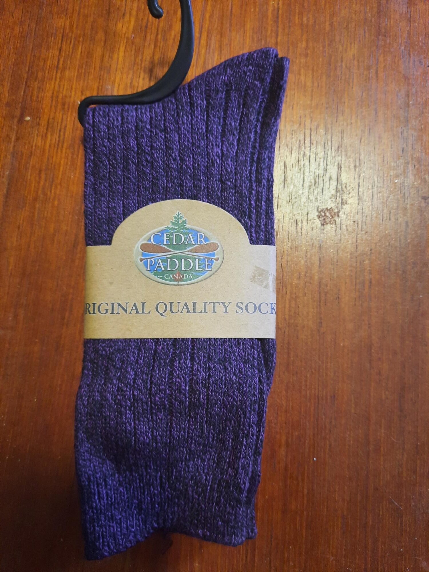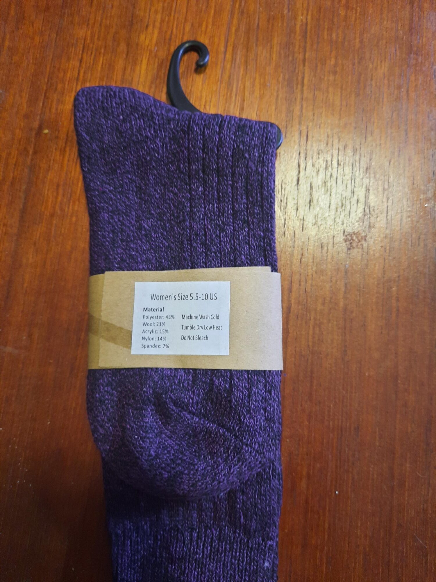 Original Quality Socks made of 43% Polyester, 21% wool, 15% Acrylic, 14% Nylon and 7% Spandex. Women’s sizes 5.5 to 10. Purple